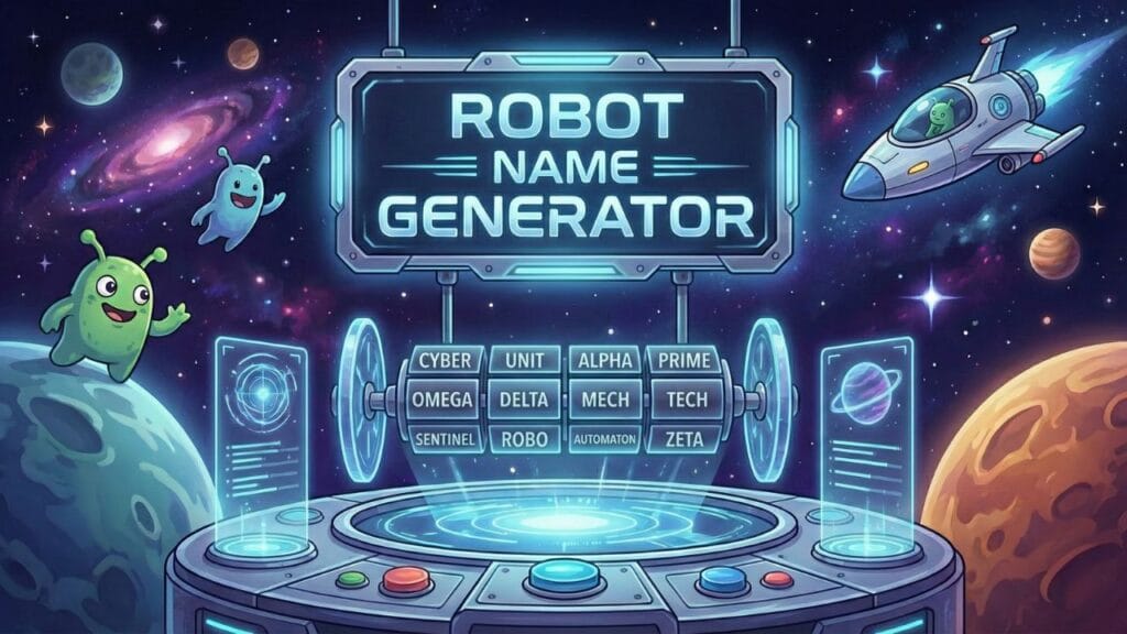 A robot’s name should fit its vibe, whether it’s a trusty pal or a creepy foe. Our generator has you covered.